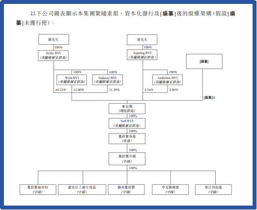 舒宝国际的股权结构呈现典型的家族企业特征,颜先生通过全资控股的Softo BVI、Wish BVI及Galaxey BVI间接持有公司90%股份,并担任董事长兼执行董事,其家族成员深度参与公司管理。公司主要经营地址、生产基地位于福建省晋江市。