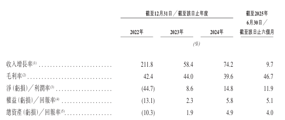 公司于2022-2024年分别录得收入1.81亿元、2.87亿元及4.997亿元,2025年上半年收入同比增长9.75%至2.83亿元。