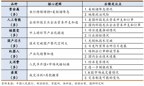 权益方面,我们认为虽然外部冲击导致短期波动加剧,但核心指数仍在延续上行节奏(沪深300在20日均线以上运行),当前中美博弈或已进入深水区,对外部分核心战略资源出口管制、对内部分核心科技自主下,我国核心竞争力正在持续提升,或为市场持续走强进一步夯实基础。