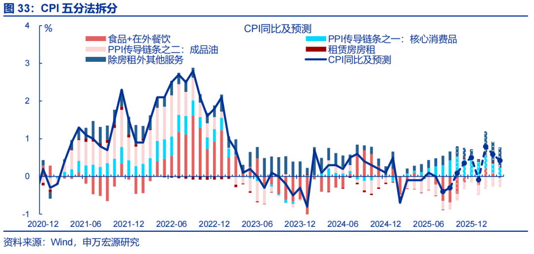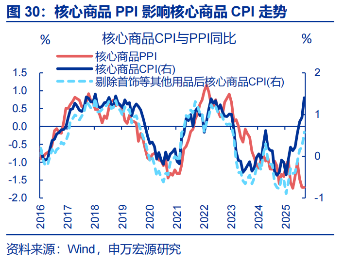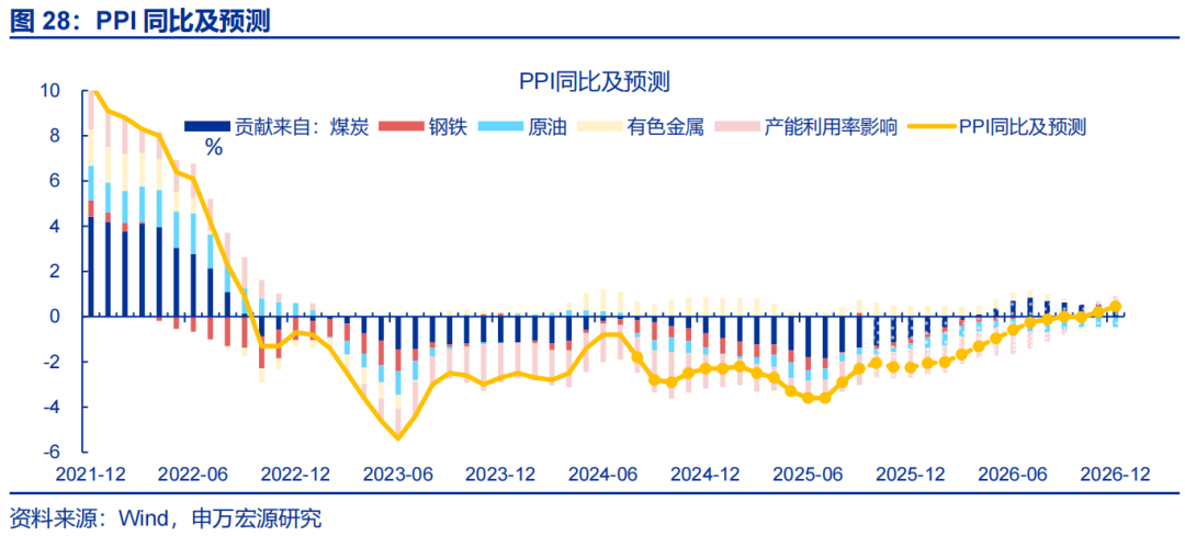 PPI:虽然中下游产能利用率持续偏低,但10月以来上游大宗明显涨价,或推动PPI温和恢复。大宗价格方面,虽然钢价出现较大幅度回落(环比-1.4%),但国内铜价、煤价延续上涨(环比分别7.5%、5.5%),同时国际油价领先我国PPI半个月,9月中旬-10月中旬油价环比降幅收窄至-0.2%,预计大宗价格对PPI贡献仍在持续。但反内卷落地滞后下,中下游产能过剩问题仍较明显,令中下游价格修复斜率偏慢,因而10月PPI修复程度有限、预计可能回升至-2.1%左右。