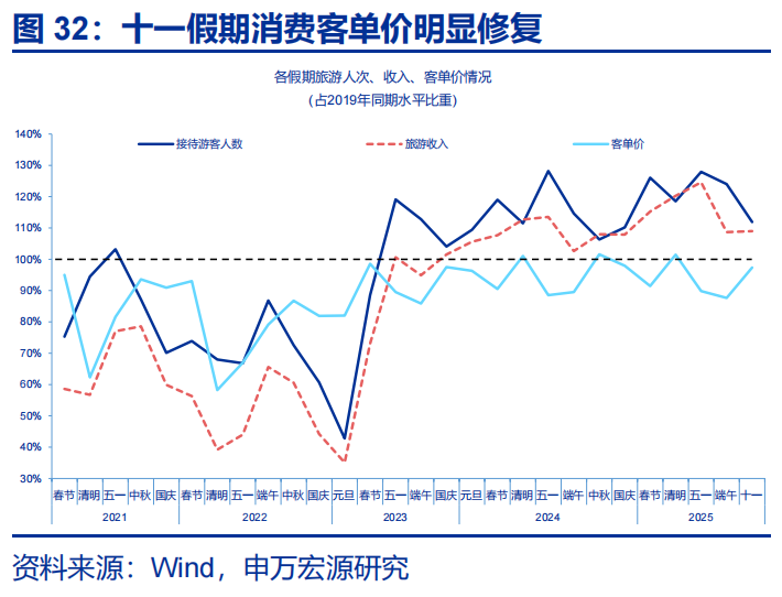 消费:“双十一”提前或短暂支撑商品零售;同时服务领域维持较强的增长韧性,预计社零在本月出现暂时性反弹。在“双十一”促销进一步前置叠加汽车补贴政策调整预期影响下,10月社零或出现反弹(3.4%),推动部分商品消费从11月转移至10月。但随着促销高峰回落,及去年高基数、居民需求“透支”等影响下,商品零售后续或呈弱势表现。而在中秋国庆长假刺激及居民出行维持高位带动下,服务消费需求得到更多释放;税务总局增值税发票数据显示,假期服务消费同比为7.6%、高于商品消费(3.6%),后续消费的增长弹性或更多在服务领域。
