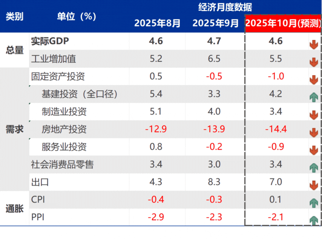 三问:月度数据表现如何?10月通胀指标读数或有回升,实际GDP(4.6%)亦或保持较高增速。