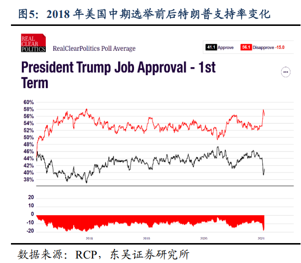 对任何一位美国总统而言,中期选举都有着重要的政治意义,中期选举的结果将决定其任期后半程的议程和政策主张能否继续顺利推进。以2018年中期选举为例,民主党在重获众议院控制后立马开展了对特朗普的反制措施,其政治行动主要包括:①众议院迅速冻结了美墨边境墙、基础设施法案等一系列特朗普政策议程;②众议院开启一系列对特朗普的调查与指控。例如,2019年9月,众议院正式启动“乌克兰电话门”弹劾程序,指控特朗普施压乌克兰调查拜登家族。